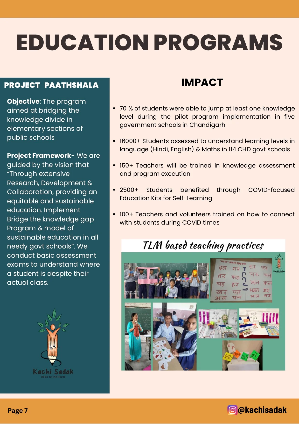 Kachi Sadak Foundation’s Paathshala Program has expanded its scope to 112 schools in Chandigarh. Baseline assessment gives every child an opportunity to share their learning capability through various modes including Visual, Written, Oral and Cognitive evaluation.
