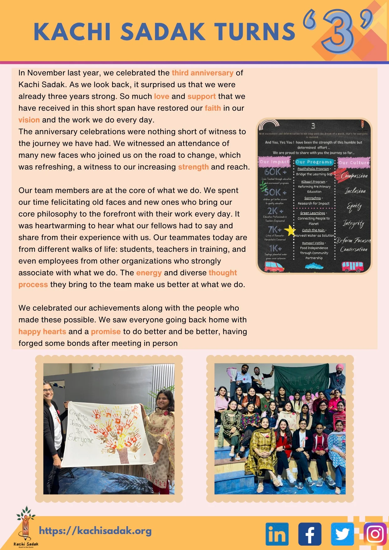Anganwadis are the foundation of early learning. Through the Pehle Kadam Program, Kachi Sadak Foundation launched its first Model Anganwadi in collaboration with the Department of Social Welfare, Chandigarh.