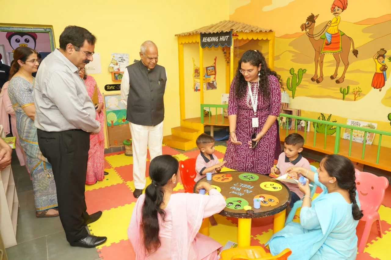 UT administrator Banwarilal Purohit inaugurated Chandigarh’s first model anganwadi-cum-crèche in Dadumajra on Tuesday. The crèche is for children under the age of six who do not have adult caregivers at home after their family members leave for work.