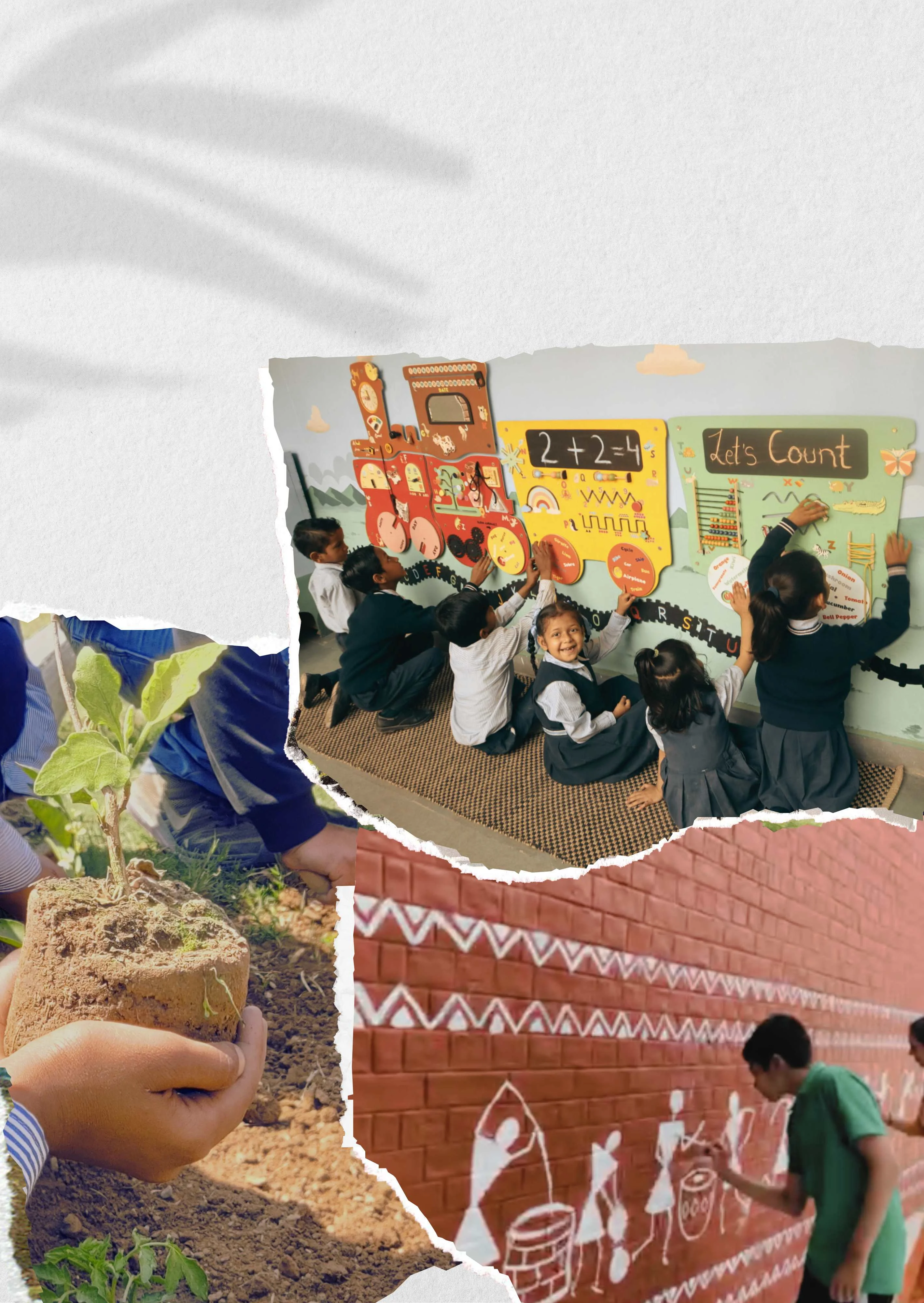 The fingers that came together to make a fist and create a revolution. Revolution for people and the planet, for equity, co-existence and a tomorrow that belongs to everyone. Our journey is fuelled by creativity, community engagement, and a deep belief in the transformative power of learning. Dive deeper into our story here.
