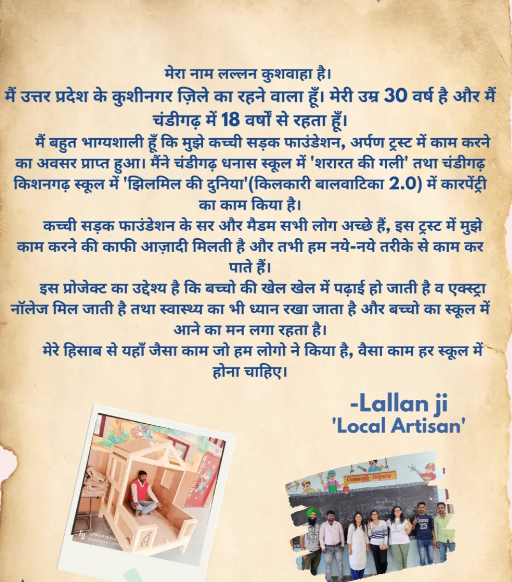 Lallan ji & Amritpal ji's Team, our local artisans, have infused creativity and passion into every piece, helping us bring our vision to life. Their dedication has been an invaluable part of our journey, and we’re honored to share their words with you.